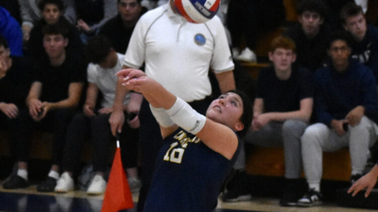 Lynnfield led from start to finish in the second set, but it was still up for grabs with Lynnfield holding a 9-5 lead. With junior captain Audrey Manning at the service line, the Pioneers went on a 9-0 run — the big shots being a couple of Manning kills and ace, an Elliana Moretti winner, and a monster kill from Sutherland that stretched the Pioneers’ lead to 18-5. Fenwick senior captain Emme Lubas stopped the bleeding with a big kill.